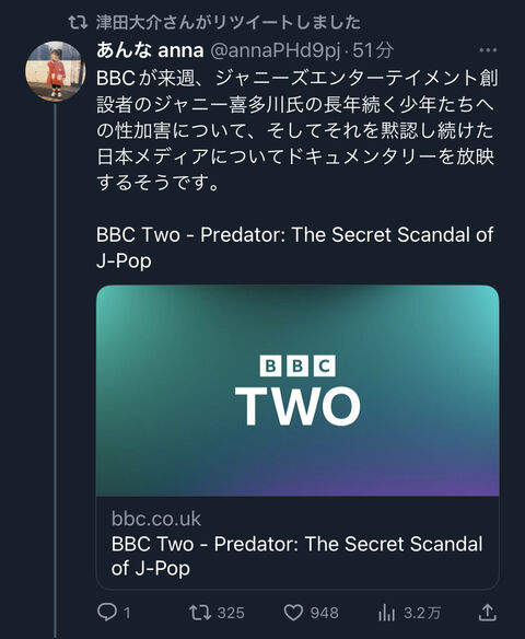 【悲報】ジャニーズの闇(少年達への性的加害)が海外のテレビに取り上げられてしまう 2023/3/6 芸能人の気になる噂 1: それでも動く名無し 2023/02/28(火) 01:47:58.43 ID:/xpxFpQN0 https://livedoor.blogimg.jp/uwasainfo/imgs/2/f/2f082388.jpg https://www.bbc.co.uk/programmes/m001jw7y 続きを読む Source: 芸能人の気になる噂