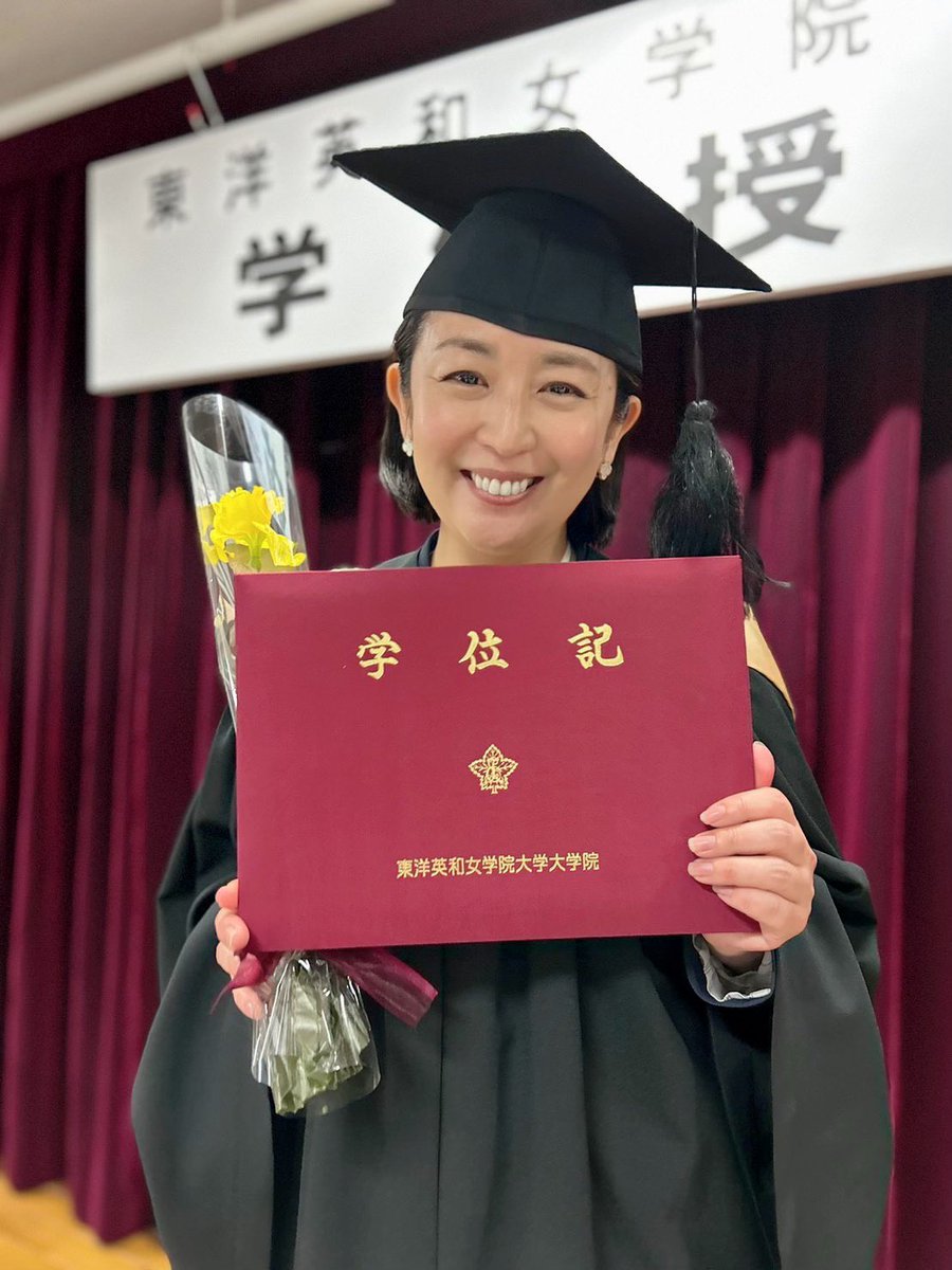 酒井美紀が18日、自身のツイッターを更新し、東洋英和女学院大学大学院の国際協力研究科修士課程を修了したと報告した。