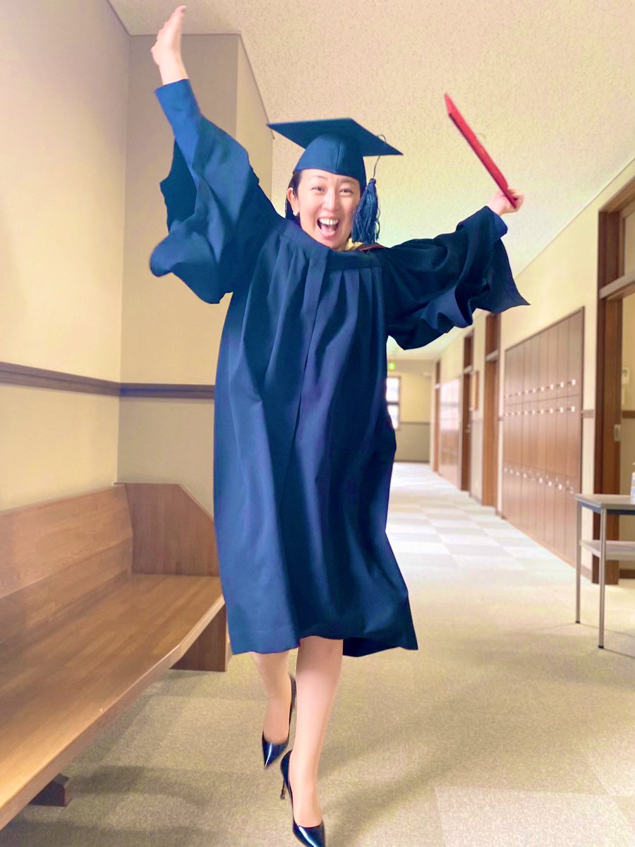酒井は「4年間の長期履修。辛く苦しくて楽しい4年間。多くの方々の支えがあって、本日、修了の日を迎えることができました。感謝しかありません。本当にお世話になりました。心よりありがとうございました」