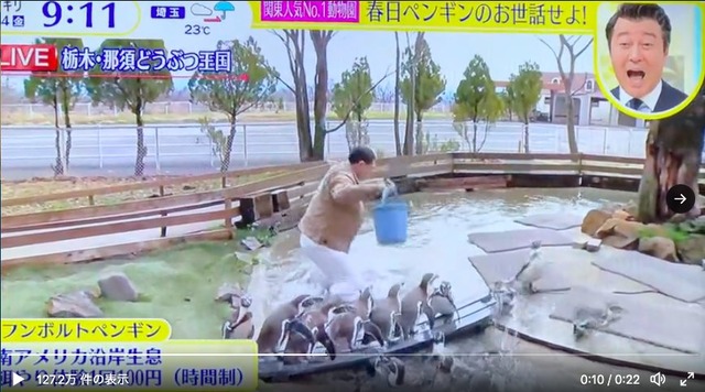 動物がいない池に入る可能性があることは事前に打合せしておりましたが、本番ではペンギンのいる池に入ってしまう放送となりました。