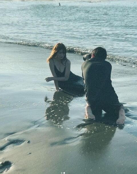 インスタでは「みんないっぱいみてね!笑」とファンに呼びかけ、海での撮影オフショットを公開。砂をさらりと舞わせる様子や、海辺でワンピースを濡らしながら豊満な胸元をあらわにした妖艶ショットなどを披露している。