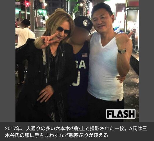 「私はコカインの売人であり、現役組員でしたから、三木谷さんは警戒して写真などは撮らせてくれませんでした。ところが、この日は頼まれたものを持って待ち合わせ場所まで行くと、YOSHIKIさんとともに姿を見せた三木谷さんは酔っていて異常なハイテンション。六本木の路上に下着姿で現われ、乳首も透けていましたが、肩を組んで写真を撮らせてくれたのです。私は嬉しくて、この画像をその後しばらくは自分のスマホの待ち受け画像にしていました。身内の人間(仲間の組員)は、それを見てびっくりしていましたね(笑)」(同前)
