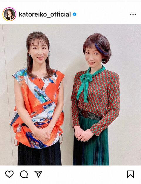かとうれいこ 細川ふみえとの共演ショットに「凄いツーショット」「お2人とも体型維持が素晴らしい」