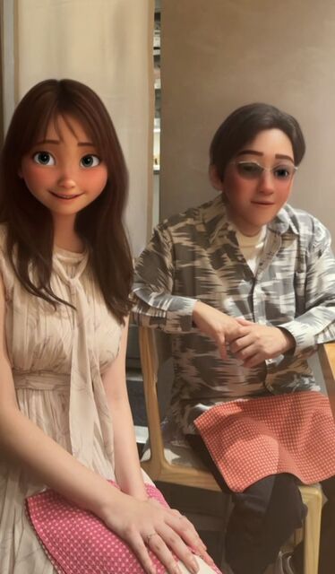 通に写っていますが、4枚目は2人とも顔がアプリで加工されています。小嶋さんはかわいく、秋元さんはイケメン風になっていま