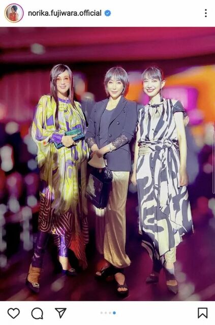 藤原の投稿に、フォロワーからは「紀香さん スタイルが良いだけじゃなくて雰囲気もステキで服、とても似合っていますね~」「美魔女のあらし!」「のりか~カッコいい!」「孔雀みたいに、綺麗(きれい)」「着こなすなぁ」「大好きな美人3人です」「GORGEOUS(ゴージャス)でCOOOLな着こなしですね」「皆さん、お美しいです」といった反響が寄せられている。