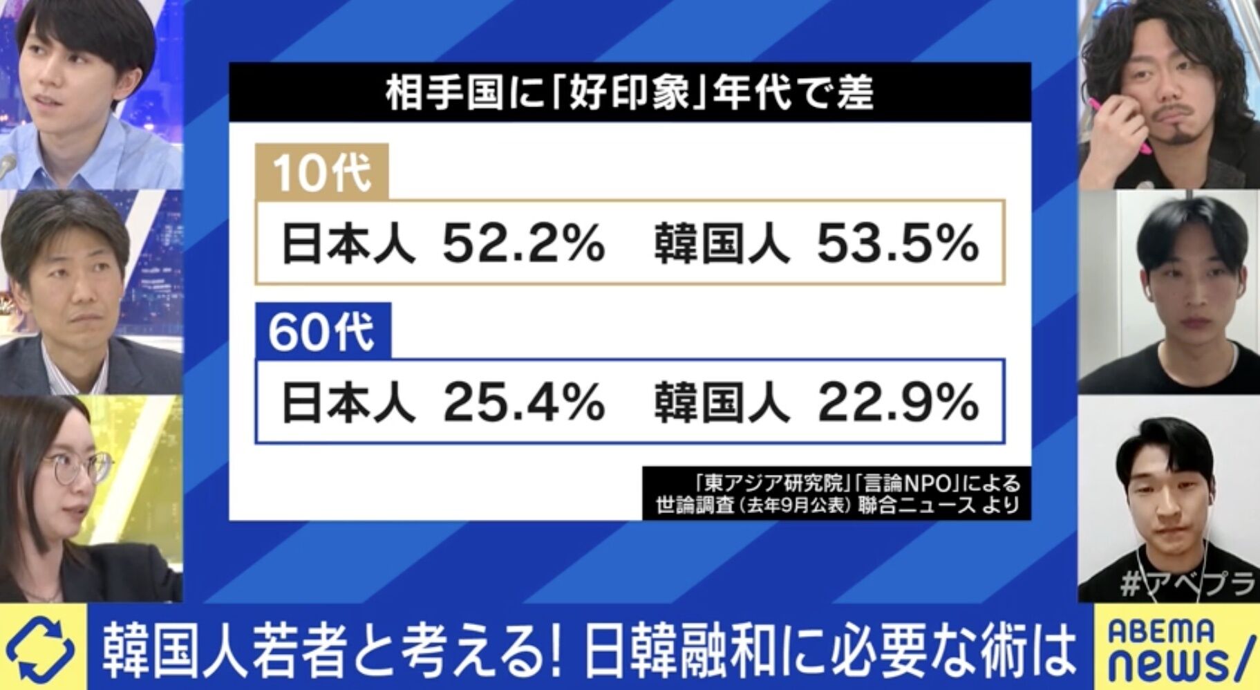 『ABEMA Prime』では日韓の架け橋として活動する韓国人に加え、韓国の文化や習慣などを発信する韓国人YouTuberらと、「日韓が仲良くなる方法」を話し合った。