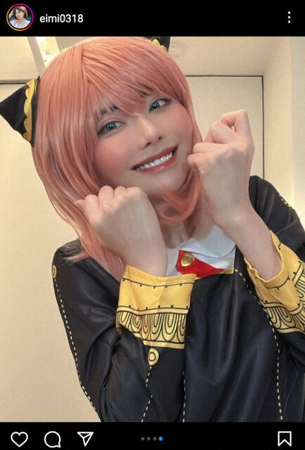 「あざざます!!!」とつづり、アーニャのコスプレでさまざまな表情をしている写真をアップ。ハッシュタグで「アーニャを知ると世界が平和に」「アーニャコスプレ」「スパイファミリー」「ピーナツ」などと添えた。
