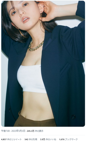 発売に先駆け、胸の谷間と美へそを見せたスタイリッシュなジャケット姿の先行カットが公開され、ファンから興奮の声が寄せられていました。