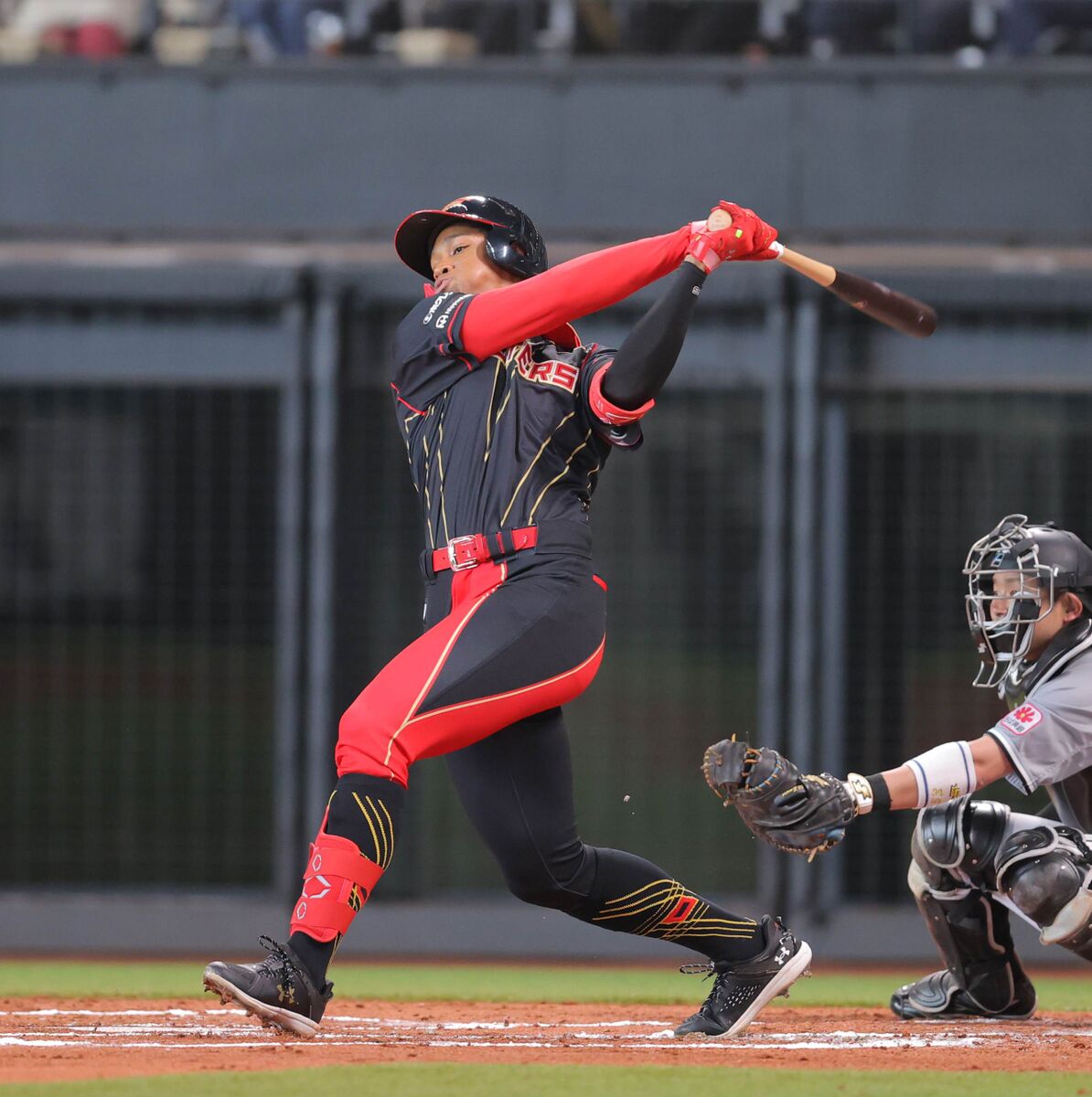 かねて指揮官がイメージしていた「野球=ヒーローがカッコいいプレーを見せる」をテーマに制作され、監督就任当初から青写真を描いていたユニフォームが、ついに誕生。斬新なカラーは、闘争心をイメージした「赤」と締め色で「黒」をチョイス。胸元を中心に大胆にプリントされた「V」には「VICTORY」の頭文字、「少しぽっちゃりした選手もスタイルよくなる。目のマジック」という新庄監督ならではのこだわりが2つ込められている。