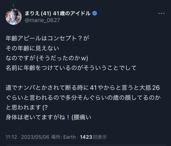 道でナンパとかされて断る時に41やからと言うと大抵26ぐらいと言われるので多分そんぐらいの歳の顔してるのかと思われます(?