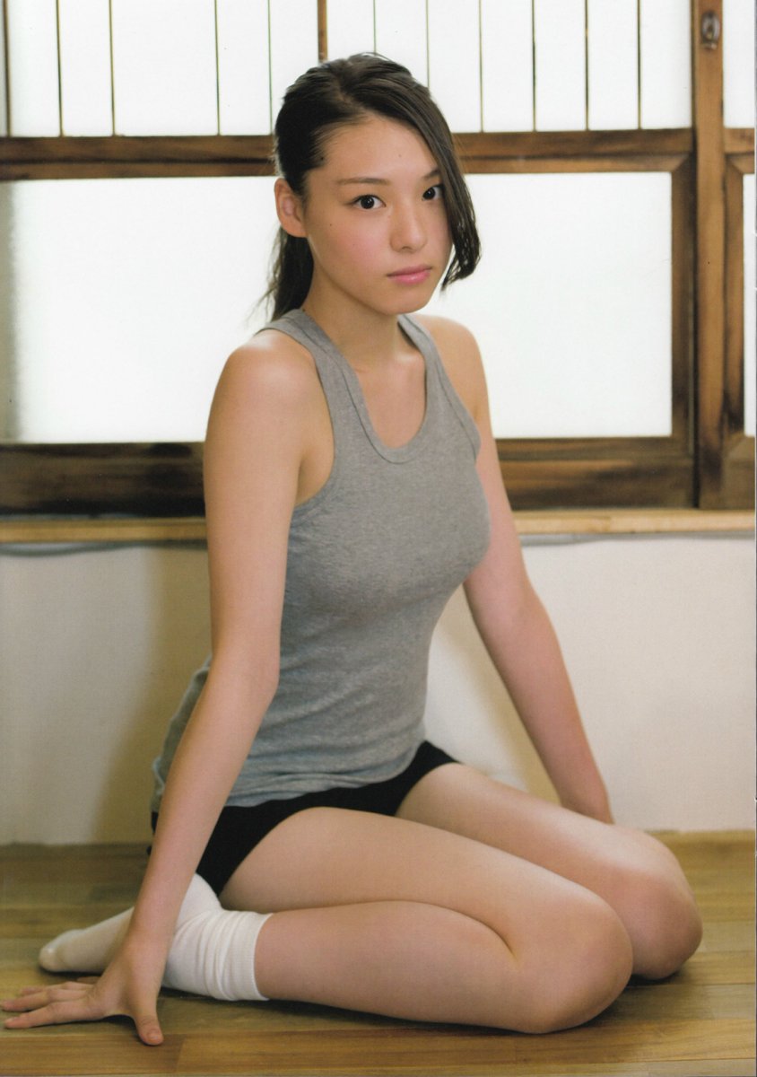 今号では、初の水着グラビアに挑戦。色白の美しいバストを披露している。
