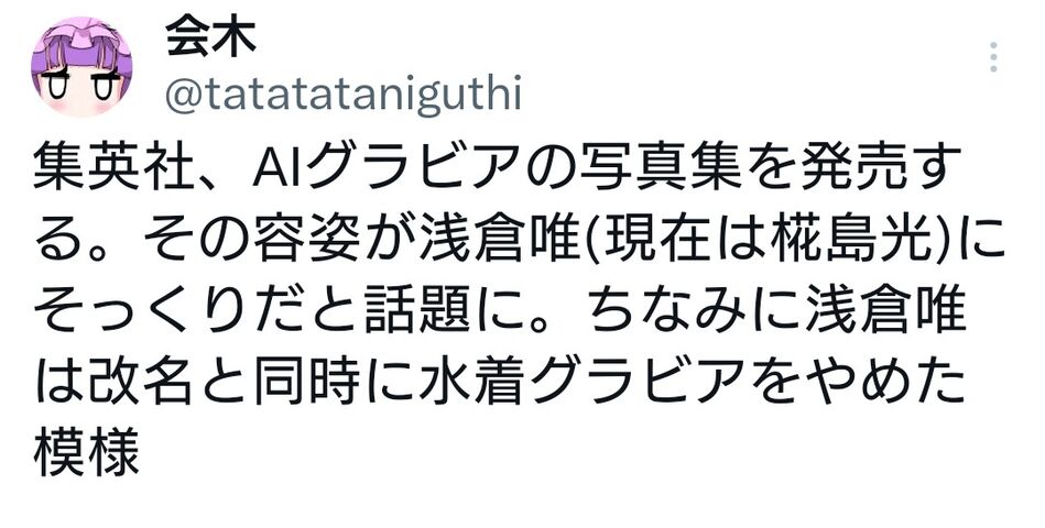 【悲報】週間プレイボーイが発売した「AIグラビア」実在の女性をモデルにした可能性が浮上する 2023/6/6 芸能人の気になる噂 1: それでも動く名無し 2023/05/30(火) 08:25:27.32 ID:xef6dgkOr 肖像権の侵害ではないかと炎上する https://i.imgur.com/JVQKiAh.png 続きを読む Source: 芸能人の気になる噂