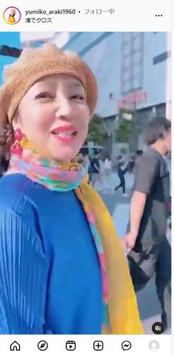 歌手でタレントの荒木由美子(63)が10日、自身のインスタグラムを更新。1977年(昭52)にリリースした、阿木燿子作詞、宇崎竜童作曲の「渚でクロス」を歌う動画をアップした。