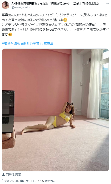 AKB48グループ総監督の向井地美音(25)が、2023年7月20日、1st写真集『胸騒ぎの正体』を発売します。