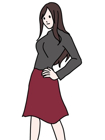 前髪パッツンのオレンジロングにグレーのタンクトップ、ショートパンツ姿で、美しいプロポーションを見せている。