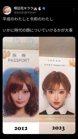 スポンサーリンク 明日花キララさん、2012年と現在のパスポート写真を公開 芸能人の気になる噂 2023.06.20 スポンサーリンク 1: それでも動く名無し 2023/06/19(月) 18:39:41.83 ID:S2CrdQsE0 続きを読む Source: 芸能人の気になる噂