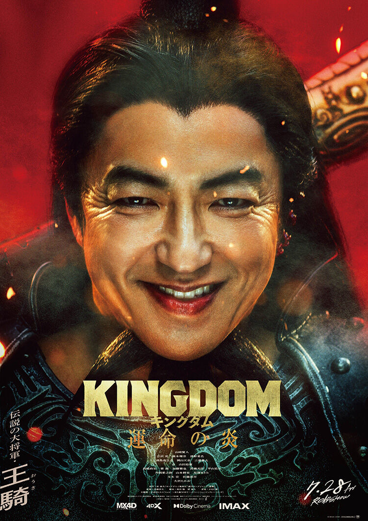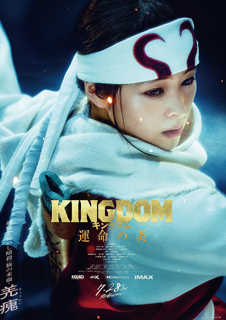 本作では14日から19日にかけて全15種のキャラクタービジュアルを映画公式サイト・SNSで公開。楊端和のほか信、羌カイ(清野菜名)、飛信隊(岡山天音、三浦貴大、濱津隆之、真壁刀義、田中美央、やべきょうすけ、佳久創、町田大和ら)、エイ政、河了貂(橋本環奈)、昌文君(高嶋政宏)、趙荘(山本耕史)、馮忌(片岡愛之助)、万極(山田裕貴)、昌平君(玉木宏)、呂不韋(佐藤浩市)、紫夏、王騎(大沢たかお)、騰(要潤)が公開された。(編集部・石井百合子)