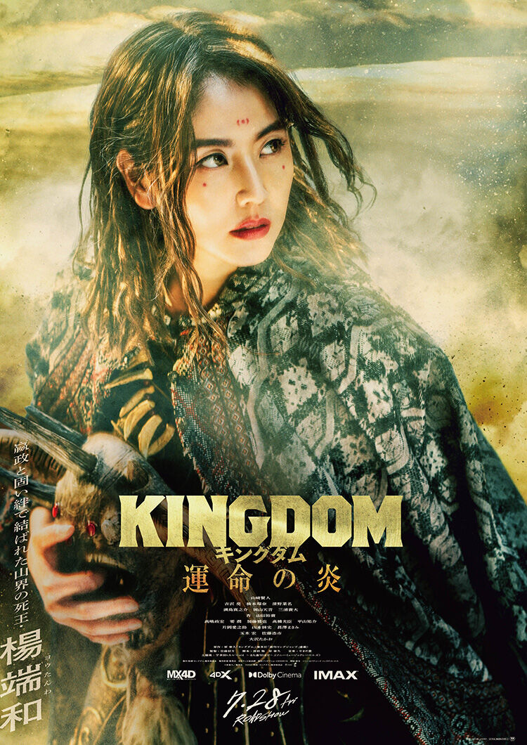 原泰久の漫画を山崎賢人主演で実写映画化するシリーズの第3弾『キングダム 運命の炎』(7月28日公開)で長澤まさみ演じる楊端和のキャラクタービジュアルに「きたー!」「待ってました!」の歓声が沸くと共に、その美貌が注目の的になっている。