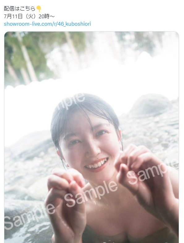 発売前日、発売日記念SHOWROOM配信中に購入するともらえる特典ポスターの絵柄が公開されました。温泉に入り、まるで全裸に見える絵柄にファンが衝撃を受けていました(実際には多分水着かなにか着てます)。