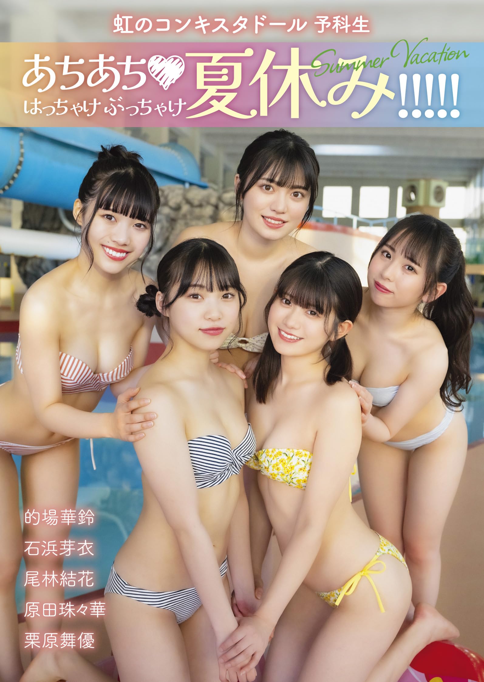 正統派アイドルグループ「虹のコンキスタドール」の予科生選抜5人が、2023年7月21日、水着写真集「あちあち♡はっちゃけぶっちゃけ夏休み!!!!!!」を発売しました。