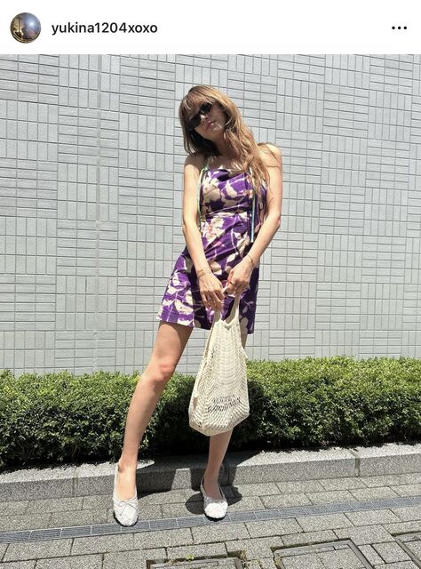 木下は、夏らしい紫のミニ丈ワンピースに白パンプス、サングラス姿で美脚を披露しながらポーズをとる写真を公開。「たまに見かける“ミニ着るのに抵抗がある”とか“歳的に”や“体型を気にして着たいけど着れない”とかある」と指摘しながらも、ファッションブランドの名をあげながらには「イケイケGOGOなモチベでサイズが大きめでミニワンピだったりあるくらい」と紹介した。
