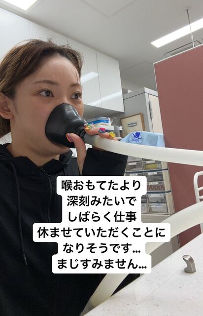この日病院を受診したといい、口にゴムマスクのようなものを付けた写真を掲載。「喉おもてたより深刻みたいでしばらく仕事休ませていただくことになりそうです…まじすみません…」(原文ママ)とつづっていた。