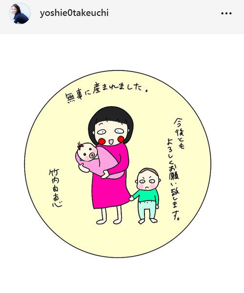 竹内は性別は明らかにしていないが、赤ちゃんを抱いた直筆のイラストとともに「私事で大変恐縮ですが、この度第二子を出産致しました。全てが可愛くて愛おしいです。守るべき存在がまた一人増え身が引き締まる想いでいっぱいです。子供の成長を見守りつつ、親としても成長していきたいです。今後のお仕事は、家族と協力しながら、続けて参ります。いつも支えてくださる皆様、本当にありがとうございます!! これからもどうぞよろしくお願いいたします」とつづった。