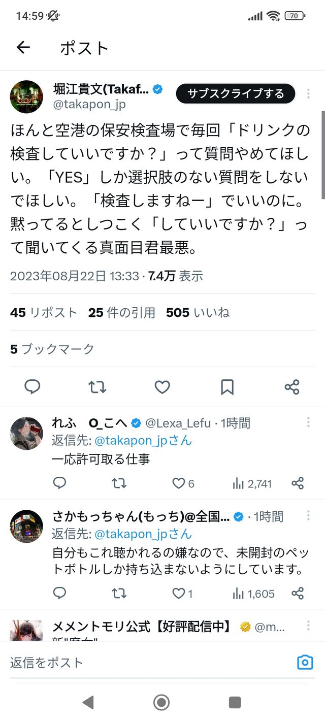 【画像】空港の持ち物検査員「ドリンクチェックしていいですか?」→ホリエモンぶちぎれ 2023/8/27 芸能人の気になる噂 1: それでも動く名無し 2023/08/22(火) 15:02:06.77 ID:O2XHduZX0 草 続きを読む Source: 芸能人の気になる噂