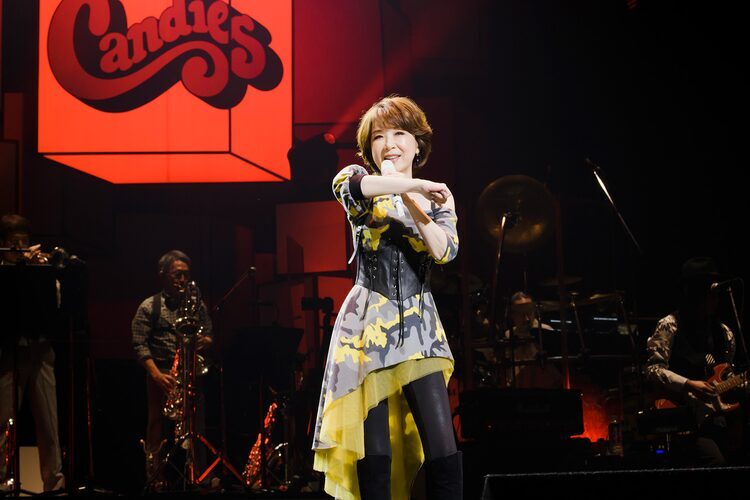 最新の“歌手・伊藤蘭”の魅力を存分にアピールしたあとは、スクリーンにキャンディーズのデビューから解散までを追った映像が映し出され、再び観客のノスタルジーを誘う。そんな演出をきっかけに突入した、キャンディーズの楽曲のみで構成されたブロック。膝丈の赤いワンピースに着替えた伊藤はデビュー曲である「あなたに夢中」をはじめ、「年下の男の子」「微笑がえし」など一世を風靡した楽曲をコーラス隊の2人と一緒に当時の振付を再現しながら次々とパフォーマンス。「あの頃の曲をこんなに時間が経ってから歌うとは思ってなかった。1978年4月4日、(キャンディーズの)ラストステージの光景は忘れることができません。美しい思い出のまま、すべてを刻むことができました」「スーさん、ミキさんの2人と出会えたことで人生が豊かになりました。誇りでもあり自慢でもあります。ありがとうキャンディーズ。今もその存在を大切にしてくれる皆様には心から感謝しています」と輝かしい日々に思いを馳せた。