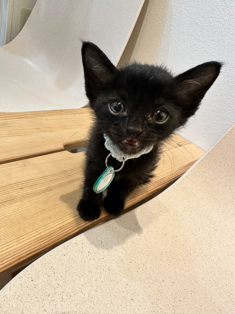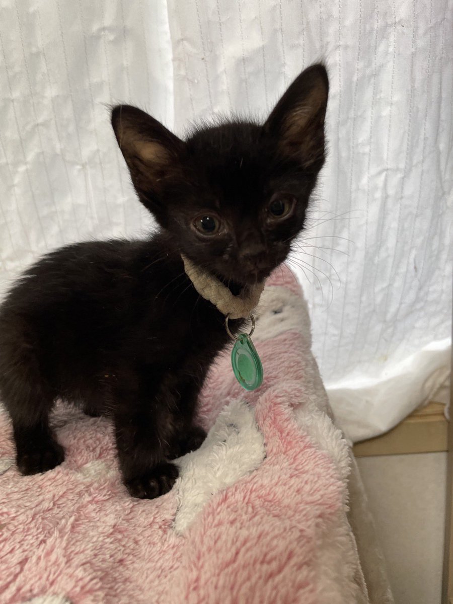 また、「多頭飼育崩壊から救われた子です」と保護猫であることを明かし、「ちいさな命、大切に守ります! ちいちゃすぎて2頭身しかない! でこっぱちカワユス」と魅力を伝えた。