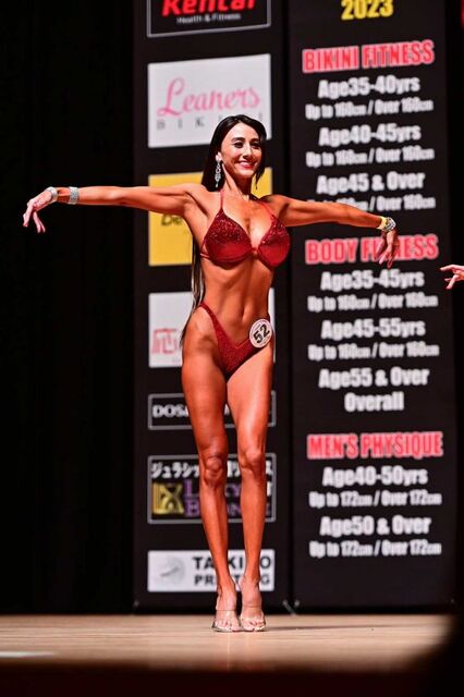 予選では10選手のうち最後に登場。笑顔を絶やさず存在感を放ち、決勝進出の6人に残った。ビキニもネイルも鮮やかな赤で統一。決勝ではソロでのポージングを堂々を披露し、2年連続の全国の舞台を噛みしめた。