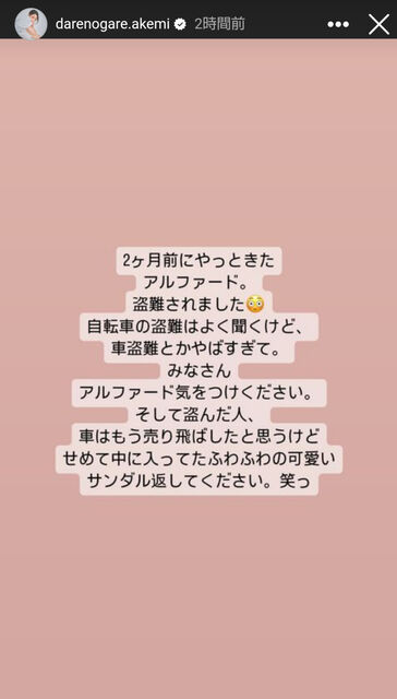 SNSでは「新しく購入したばかりのアルファードが駐車場にないんですが、、どういうこと?」と説明。