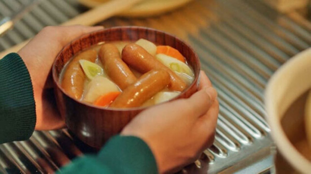 その息子が食べているのが、具沢山のお味噌汁。母親が食べ盛りの息子のことを考えて作ったのだと胸が温かくなる一品ですが、味噌汁の中にはゴロゴロとしたシャウエッセンが。