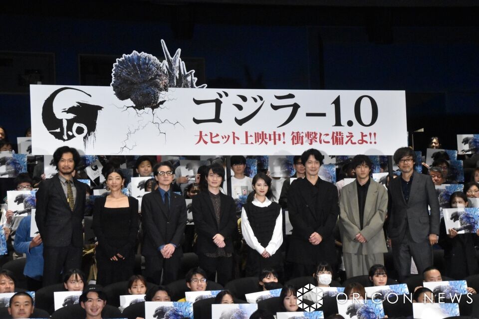 主演の神木隆之介(30)は「今日、ついに初日を迎えられて、うれしい気持ちと安心と、どのように伝わって、どう広がっていくか。3日に、この映画を見に来る選択をしてくださってありがとうございます。緊張していますけど…いかがでしょうか?」と緊張の面持ちで観客に呼びかけた。拍手が起きると「まだ、不安な気持ちもあるので。公開されたら、皆さんの作品になっていくので、皆さんの心に住み着く作品になればと思います」とあいさつした。ヒロインを演じた浜辺美波(23)は「文化の日、、祝日のゴジラの日にありがとうございます。情報を隠してきたので、まっさらな状態でどう見ていただけるか楽しみ」と観客に呼びかけた。