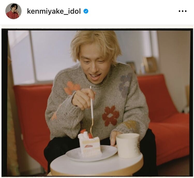 三宅は自身のインスタグラムに「健さんには苺のショートケーキ みんなが帰ったあと コーヒーを淹(い)れてゆっくり僕は残ったガトーショコラをたべた」と記し、撮影の後にケーキを食べる“あざとかわいい”アイドルショットをアップした。
