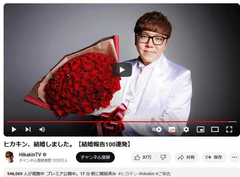 【速報】ヒカキンが結婚を電撃発表wwwwwwww超人気YouTuberが選んだお相手は・・・【動画あり】 2024/1/1 もきゅ速*´ω`*人´・ェ・` 登録者1200万人超の人気YouTuber・HIKAKIN(34)が、2024年1月1日、30代の一般女性と結婚したことを自身の動画で発表しました。 結婚を発表したYouTube動画、動画内容、2chの反応をまとめました。 続きを読む Source: もきゅ速*´ω`*人´・ェ・`