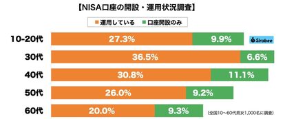 ちなみに昨年、Sirabee編集部が全国10〜60代男女1,000名を対象に調査したところ、「NISA口座を運用している」と答えた人は、全体の30.2%。「口座を開設したがまだ運用してない」との回答が9.2%だった。
