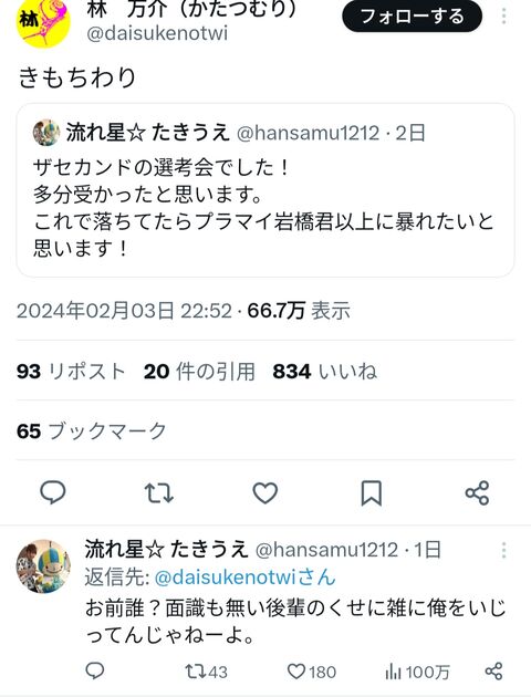 【朗報】岩橋の後輩芸人、岩橋を雑にいじる芸人にキレる「ほな松本人志のこともいじってみろや」 2024/2/14 芸能人の気になる噂 1: それでも動く名無し 2024/02/05(月) 22:40:16.54 ID:1zU1LwRb0 続きを読む Source: 芸能人の気になる噂