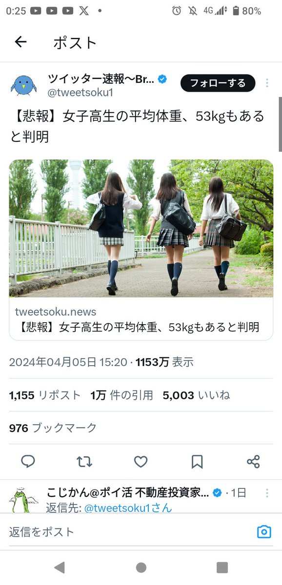 ツイッター「JKの平均体重が53kgもある」←大炎上、引用RT1万超えのブチギレへ 2024/4/14 芸能人の気になる噂 1: それでも動く名無し 2024/04/07(日) 06:12:14.26 ID:jsEB3iMG0 https://pbs.twimg.com/media/GKfdr3ibAAAzcq0.jpg おんなさんこわい 続きを読む Source: 芸能人の気になる噂