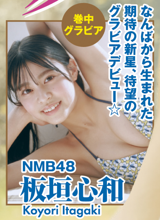 NMB48の研究生・板垣心和(いたがき こより=18歳)が、2024年5月7日発売のマンガ誌「週刊ヤングマガジン」で、初水着グラビアを披露しました。