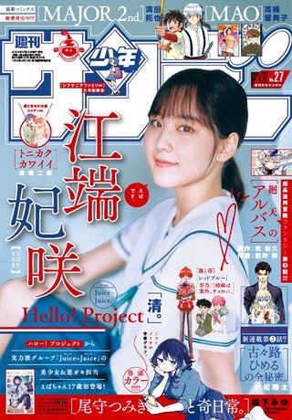 ハロプロの実力派アイドルグループ「Juice=Juice」の江端妃咲(えばた きさき=17歳)が、2024年5月29日発売のマンガ誌「週刊少年サンデー」で、表紙&巻頭グラビアを飾りました。