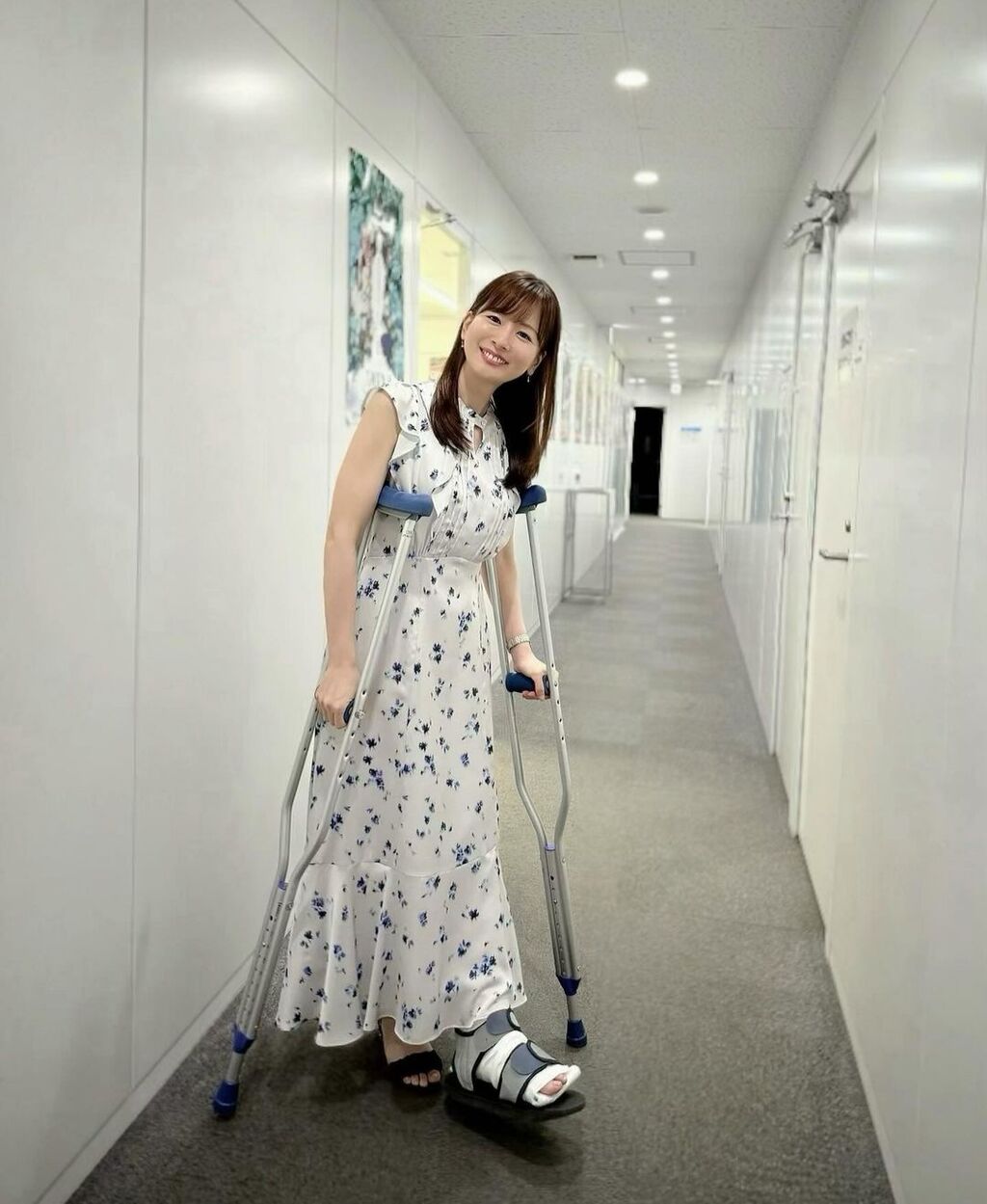 皆藤愛子、左足骨折 松葉杖姿で報告「左足以外はとても元気です」