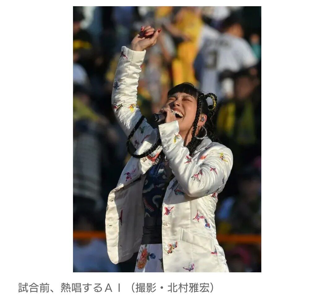 歌手AIが阪神甲子園100周年イベントで痛恨のミス 司会を務めた俳優・渡辺謙を「高倉健」と言い間違え 頭を叩いて悔しがる