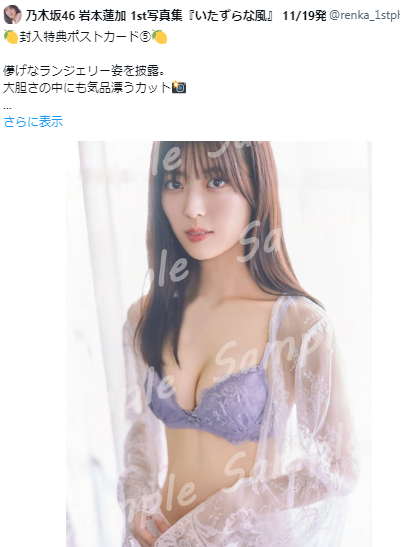 発売に先駆け、封入特典ポストカード第5弾として、大胆さの中にも気品漂う儚げなランジェリーカットが解禁され、ファンから興奮の声が殺到していました。