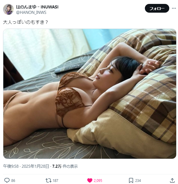 発売当日、本人の公式X(旧Twitter)には豊満なバストを見せつけたセクシーなオフショットが投稿され、ファンから興奮の声が殺到していました。