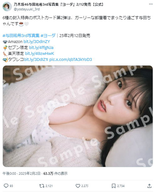 乃木坂46の与田祐希(24)が、2025年2月12日、水着やランジェリー姿を約5年ぶりに披露する3冊目の写真集『ヨーダ』を発売します。