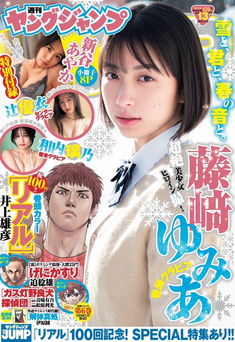 『オロナミンC』のCMやNetflix『イクサガミ』の出演などで注目を集める女優の藤﨑ゆみあ(17)が、2025年2月27日発売のマンガ誌『週刊ヤングジャンプ』で、表紙&巻頭グラビアを飾りました。