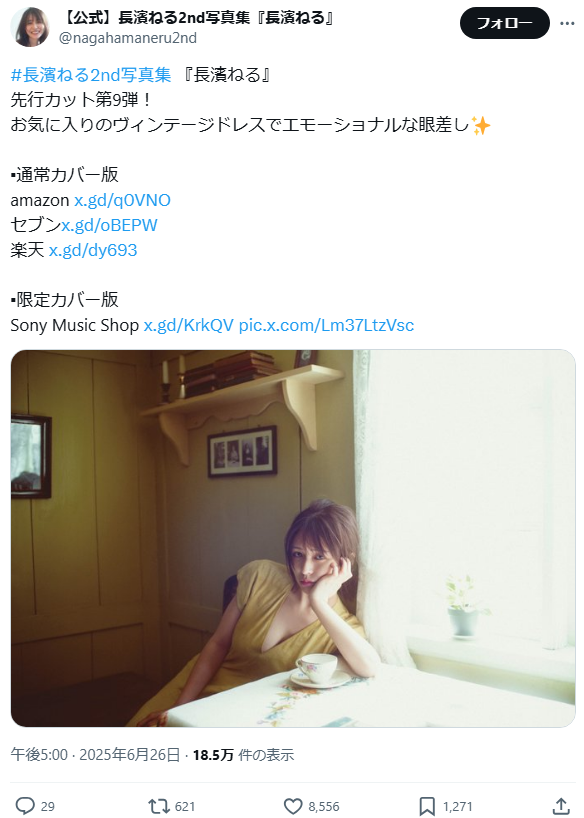 発売に先駆け、先行カット第9弾としてお気に入りのヴィンテージドレスでエモーショナルな眼差しを向けるショットが公開されましたが、胸元からのぞく生乳にファンから興奮の声が殺到していました。