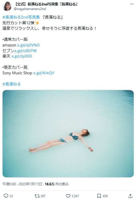発売に先駆け、温泉でリラックスし、幸せそうに浮遊する水着姿の先行カットが解禁されました。
