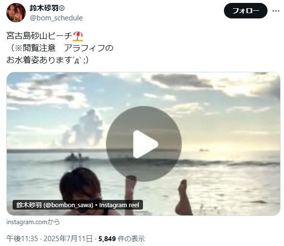 大女優の鈴木砂羽(さわ=52)が、2025年7月11日、自身のInstagramを更新。「宮古島チャリティー国際映画祭2025」に出席後、みんなで浮かれてビーチに行ったことを明かし、水着姿で海水浴を満喫するムービーを投稿すると、年令を重ねても美しい姿にファンから称賛の声が殺到していました。